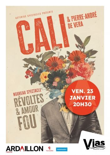 Cali reprend la route avec un nouveau projet aussi engagé qu’émouvant : « Révoltes et Amour fou ». Sur scène, il est accompagné du guitariste catalan virtuose Pierre-André de Vera.